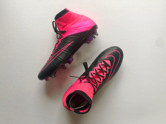 Nike Mercurial Superfly IV & Vapor X – Pink / Black / Leather overlay⚡ Built for explosive speed, now with leather luxury. Worn by CR7 and Alexis Sánchez, the Mercurial’s carbon-fibre plate and Flyknit collar took a new twist with this classic finish.